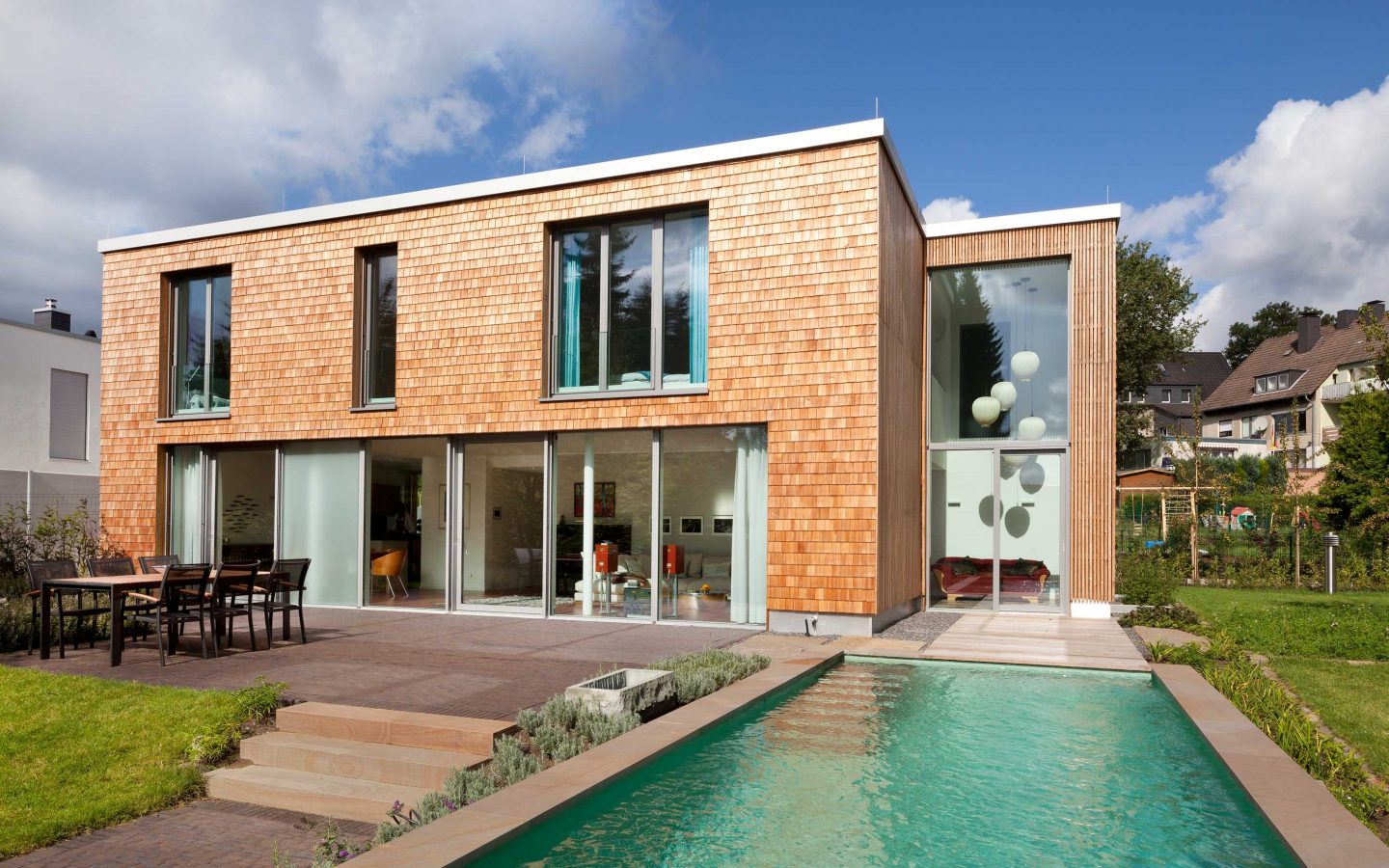 Am neu erschlossenen Hagen-Hof-Weg in Bochum Weitmar entstand in der Ecke, am hinteren Ende der Strasse, ein Haus mit nicht nur energieeffizienter Nachhaltigkeit.