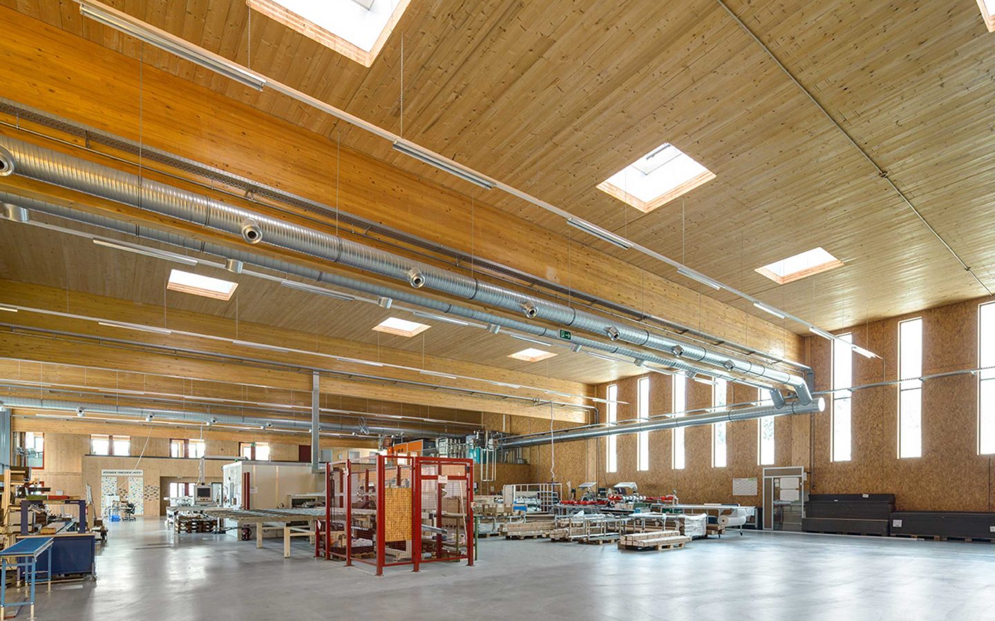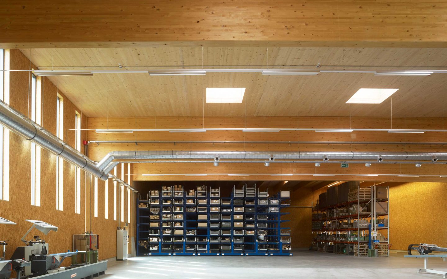 Verwaltung - und Produktionsgebäude Atmer Fingerschutz als Brettsperrholzkonstruktion auf dem Sophienhammer in Müschede