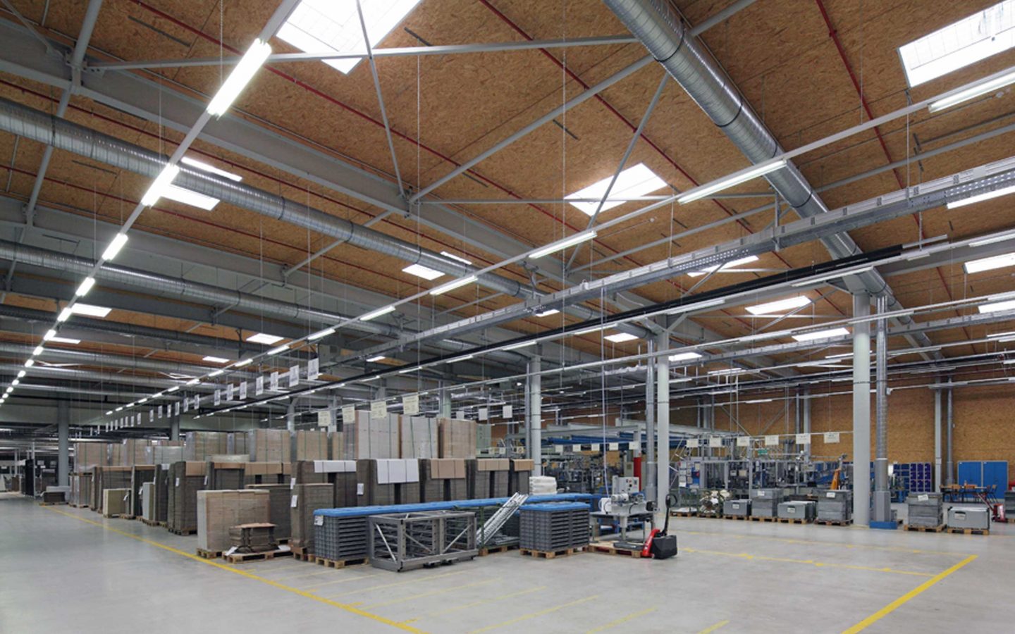 Der hochwärmegedämmte Industriebau bleibt mit einem Jahresprimärenergiebedarf von knapp über 90 KWh/qma deutlich unter dem Richtwert der EnEV. Eine Besonderheit der Erweiterung der Produktionsstätte A5 ist die Verbindung von Fertigungshalle und Tiefgarage. Aufgrund der ökonomischen Anforderungen werden Industriegebäude meist als eingeschossige, nicht unterkellerte Leichtbaukonstruktionen angelegt. Bei der Planung kamen jedoch auch ökologische Überlegungen – die über die energetische Optimierung hinausgehen – zum Tragen. Um den Flächenbedarf und die damit einhergehende Versiegelung zu reduzieren wurde der dringend benötigte Firmenparkplatz in das Konzept miteinbezogen. Ebenso wie umweltfreundliche Energiekonzepte sind Entscheidungen zum nachhaltigen Flächenmanagement Entscheidungen mit Langzeitwirkung.