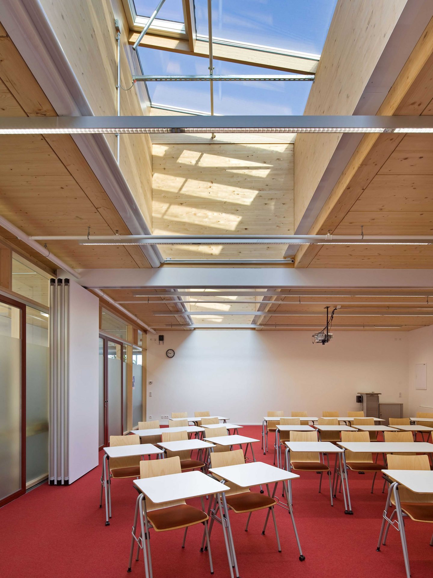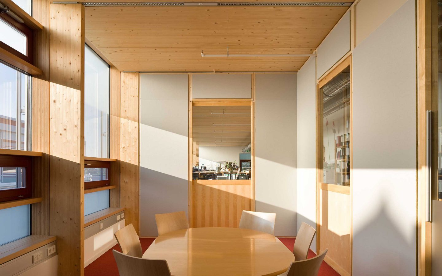 Nach den positiven Erfahrungen im ersten Bauabschnitt setzten Planer und Bauherr das erfolgreiche Prinzip der „happy hour“ fort. Dasselbe Team entwickelte die Erhöhung im Zentralbereich für die „Solvis Akademie“ als Schulungszentrum für Mitarbeiter, Handwerker und Anwender.