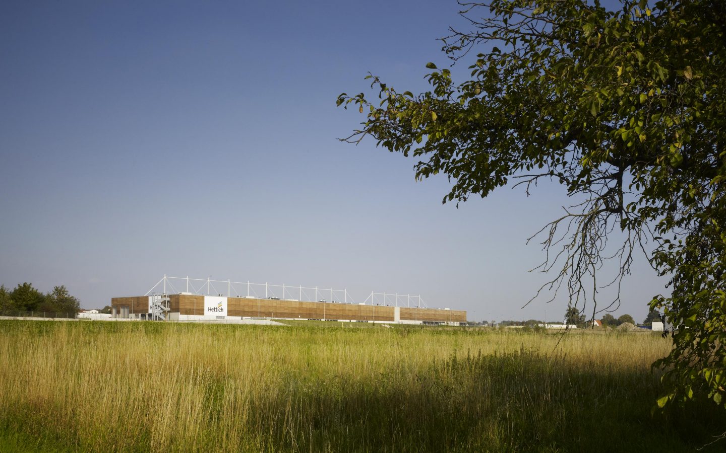 Im ostwestfälischen Bünde, nahe dem Firmenhauptsitz des Möbelbeschlagsherstellers Hettich in Kirchlengern errichteten Banz + Riecks Architekten für diesen eine moderne sowie nachhaltige Produktionshalle. Als ergänzende Nutzungen sollten der Warenein- und -ausgang sowie Büro- und Werkstatträume integriert werden.