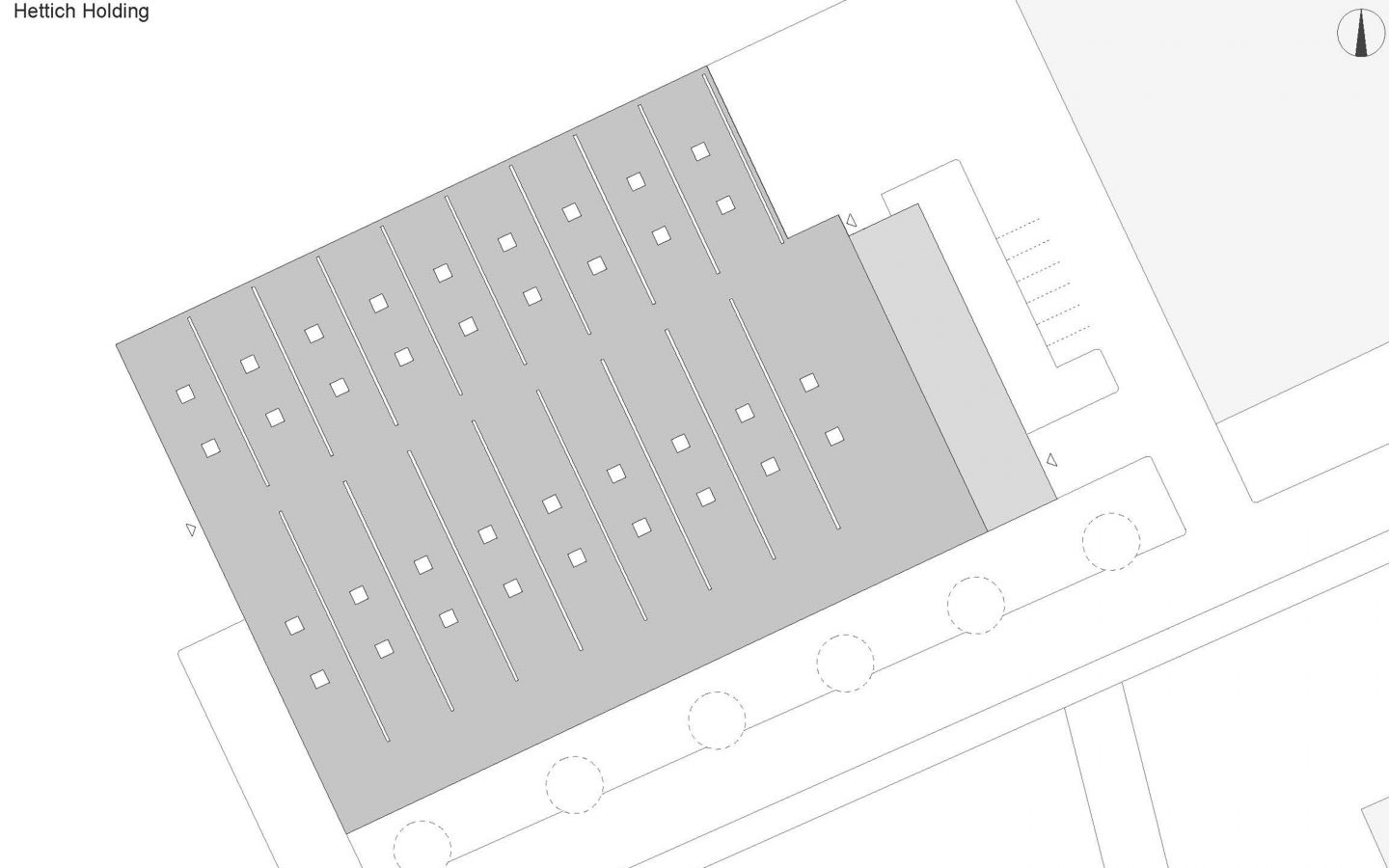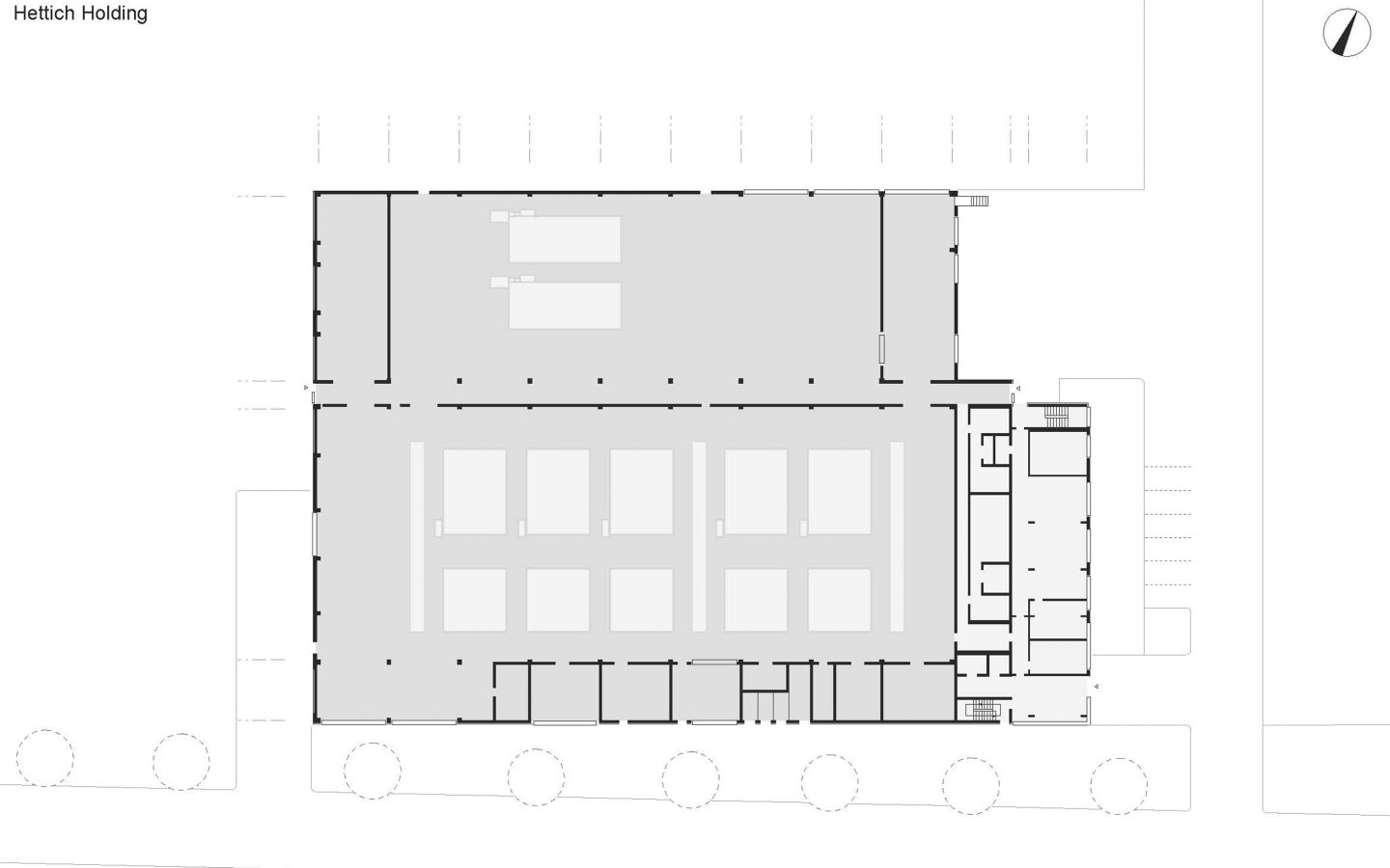 Von aussen kaum sichtbar unterscheidet sich die Halle des Druckgusswerks von herkömmlichen Industriebauten vor allem durch die hohen Anforderungen an den Brandschutz. Aufgrund der Feuergefahr bei der Verarbeitung von Magnesium ist die Produktionsstätte vollständig als F90 Konstruktion ausgeführt. Im Gegensatz dazu wurde der angeschlossene Verwaltungsbereich – dem Unternehmensverständnis von Hettich folgend – als Holzrahmenkonstruktion ausgeführt. Eine Brandwand trennt den angeschlossenen Verwaltungsbau nicht nur von der Haupthalle ab sondern markiert eine Zäsur in der Baustruktur. Um den Bedürfnissen eines wachsenden Industriebetriebs gerecht zu werden wurde die Anlage so konzipiert, dass eine spätere Erweiterung möglich ist. Die Lage auf dem Grundstück lässt einerseits nahezu eine Verdopplung der Produktionsfläche in einem zweiten Bauabschnitt zu, gleichzeitig hält sie einen größtmöglichen Abstand zur angrenzenden, kleinteiligen Wohnbebauung ein.