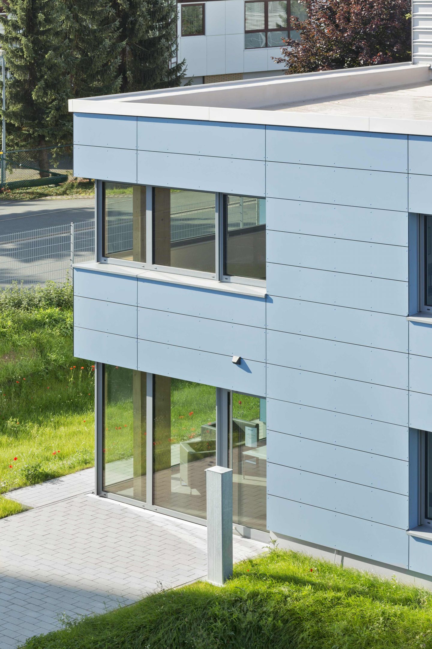 150 Kilometer entfernt vom Hauptsitz des Beschlagherstellers Hettich im hessischen Frankenberg bauten Banz + Riecks Architekten ein Druckgusswerk mit angeschlossener Verwaltung. Für die unterschiedlichen Bereiche – Produktion, Bearbeitung sowie Büro- und Besprechungsräume – mussten unterschiedliche Klimavoraussetzungen geschaffen werden. Bei der Konzeption des Verwaltungstrakts kam hinsichtlich der Bauteilquerschnitte der Passivhausstandard zur Anwendung. Das komplexe Energiekonzept wird den unterschiedlichen Anforderungen mittels einer Lüftungsanlage mit Wärmerückgewinnung und Zuluftkühlung gerecht. Aufgrund der Wärmetauscher mit einem Wirkungsgrad von bis zu 75 Prozent ist der zusätzliche Wärmebedarf der Produktionshalle nahezu gleich Null.