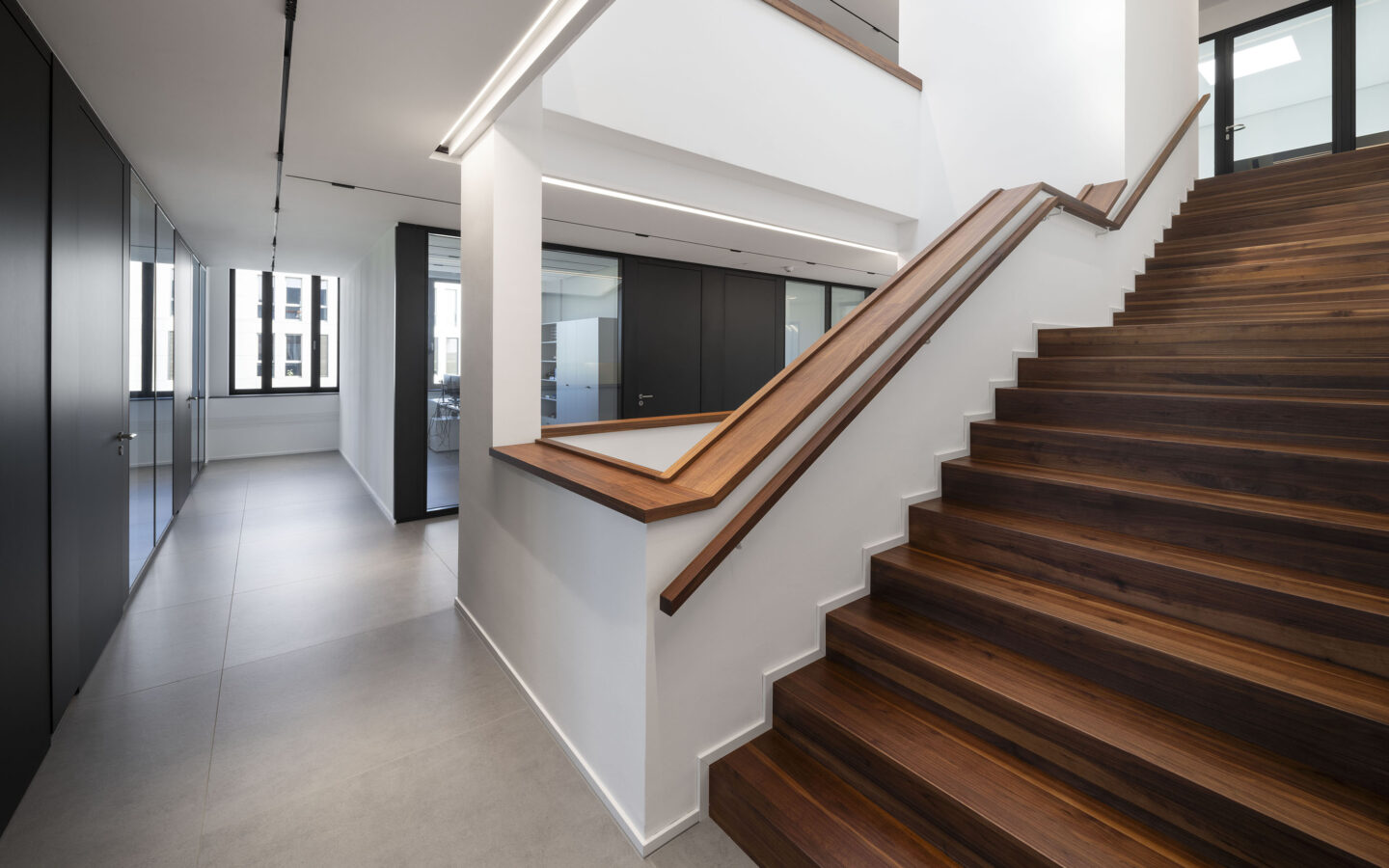 Das Konzept zur Gebäudekubatur und Matrialität orientiert sich an den Schlüsselbegriffe der Kanzlei Schneiders & Behrendt TECHNIK + RECHT.