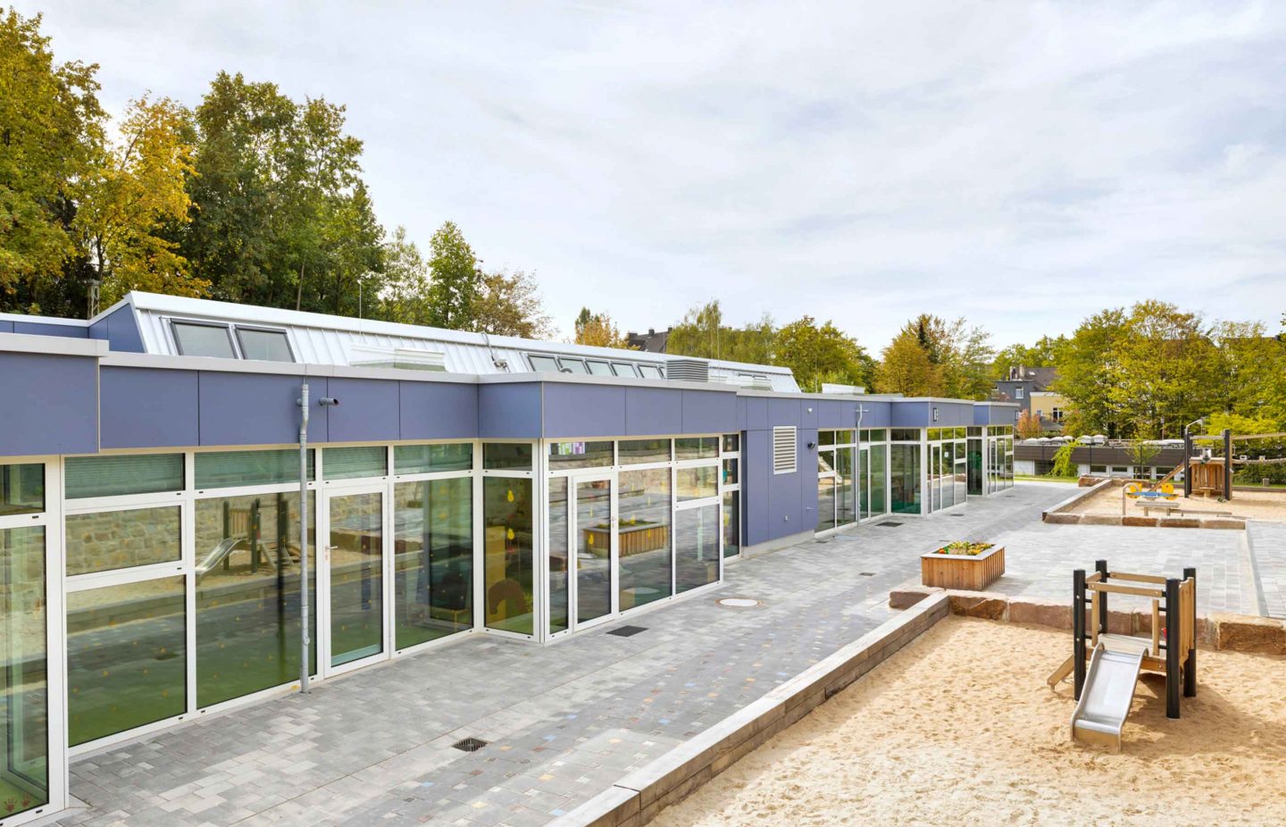 Die Kindertageseinrichtung entsteht als reiner Holzbau mit geothermischer Wärme und Kälteversorgung mit der Ausbauoption zum Nullemisionsgebäude am Sattelgut in Bochum Linden. Die Inbetriebnahme erfolgte im August 2017.