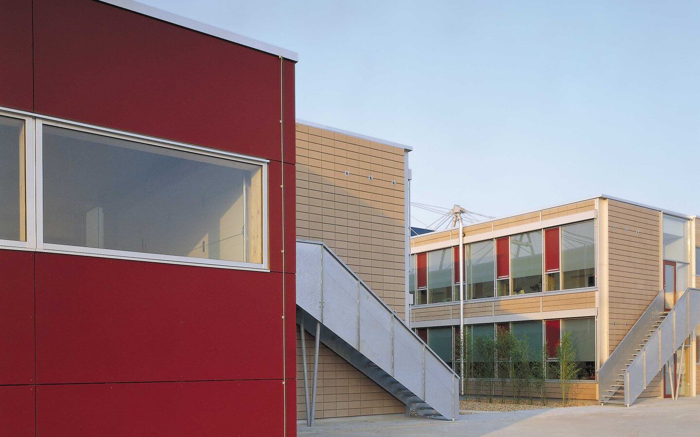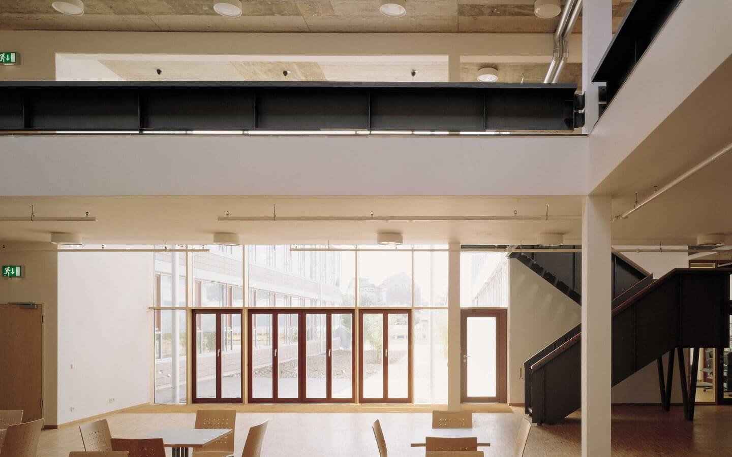 der Hersteller der betrieblichen Selbstverwaltung, entsprechend wurden sämtliche Mitarbeiter von Anfang in den Entwurfsprozess einbezogen. Gemeinsam mit den Architekten und Fachplanern erarbeiteten sie in einer wöchentlich stattfindenden „happy hour“ die notwendigen Eckpunkte der Planung. Ziel war es, trotz des extrem knappen Budgets ein gestalterisch ansprechendes, technisch ambitioniertes und in der täglichen Nutzung leistungsfähiges Bauwerk zu schaffen. Das Ergebnis manifestiert sich in einem einfachen, kompakten Gebäude, mit reduzierten Lüftungs- und Wärmelasten, jedoch ohne Abstriche an ein behagliches Arbeitsplatzklima inklusive passiver Kühlung im Sommer. Ein weiterer entwurfsbestimmender Aspekt war die Fertigungsoptimierung und Logistik sowie die gewünschte kurze Verbindung zwischen „Kopf und Hand“ im Betrieb, zwischen Verwaltung und Produktion.